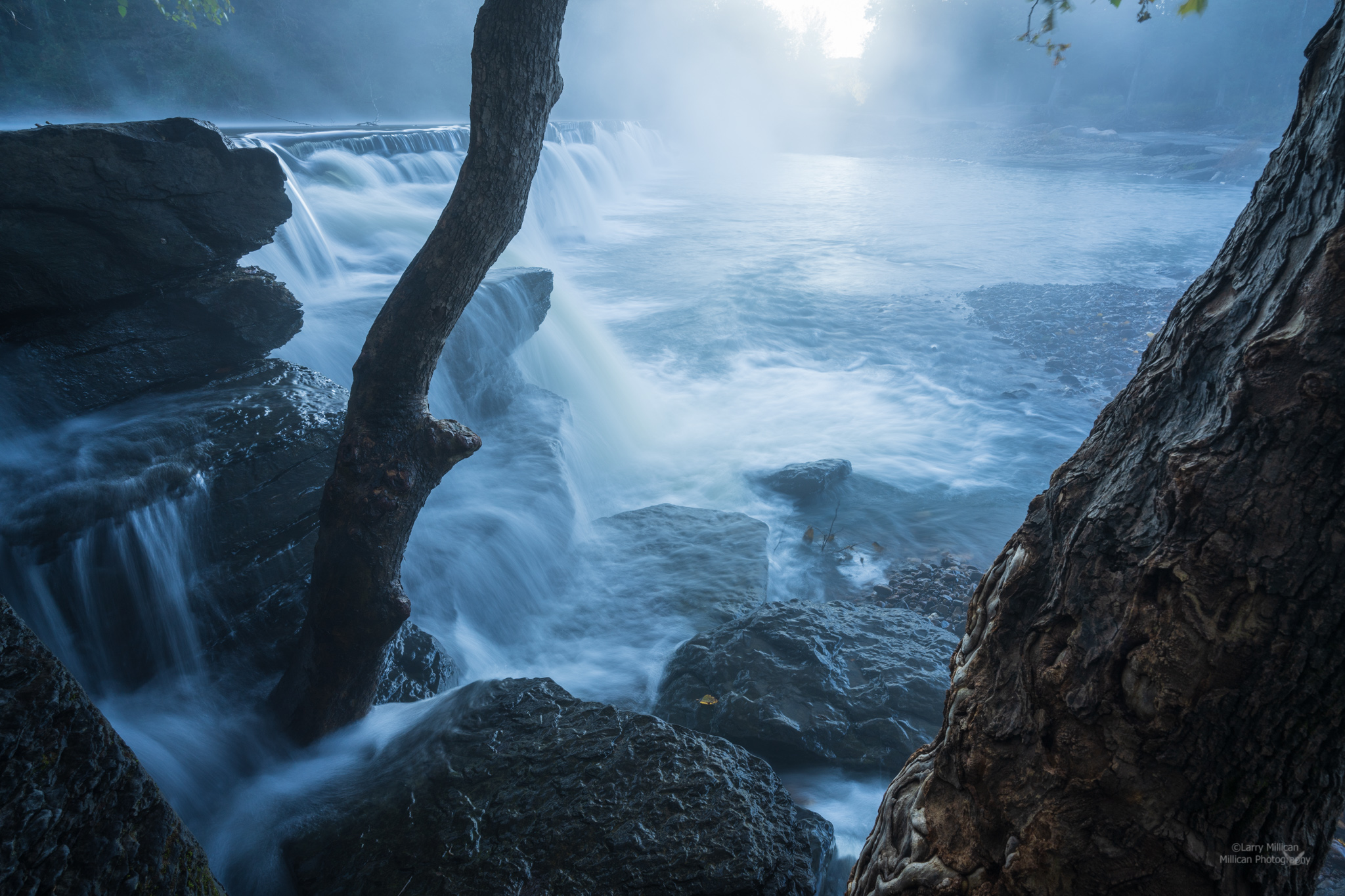 Just after the sun rose on this October morning, it backlit the mist coming from the falling water at Natural Dam, and the morning seemed to become primitive and ancient, and like the dawn of time…