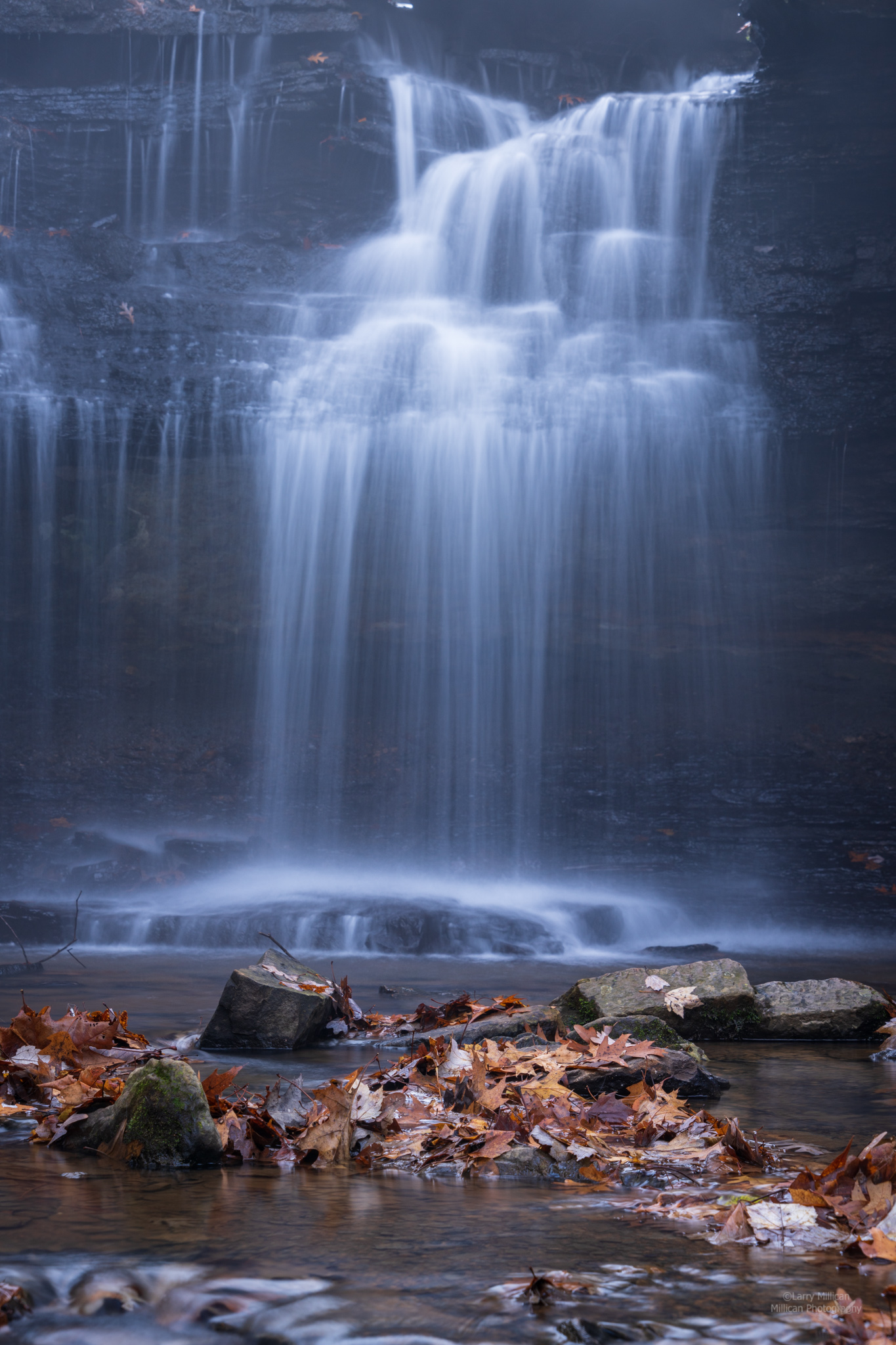 About a half-mile hike takes you to this beautiful little waterfall, less than 10 miles from my home.  I made this photograph a few days before Thanksgiving.  The light, and the flowing water, and the autumn leaves, and the solitude, all filled me with thankfulness…